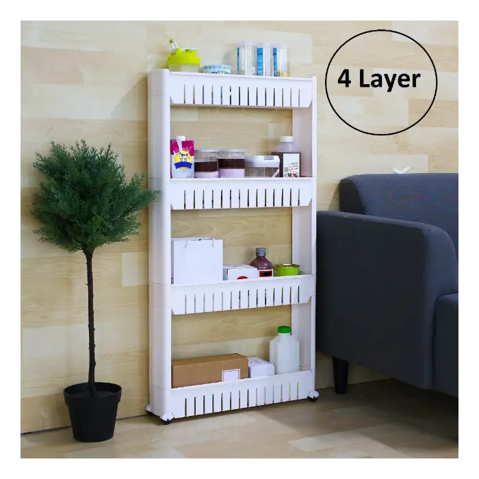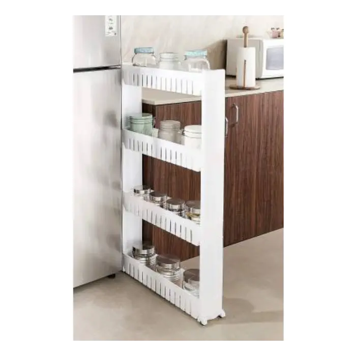Estantería Carrito Con Rueda De 4 Estantes Para OrganizarMaterial Plástico Alto ImpactoColor Blanco.Medidas: 95Cm X 54Cm X 12,5Cm