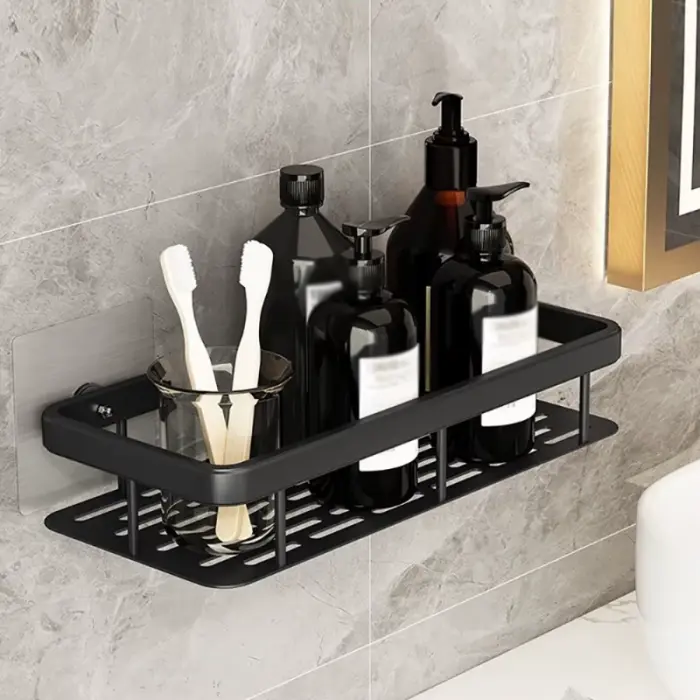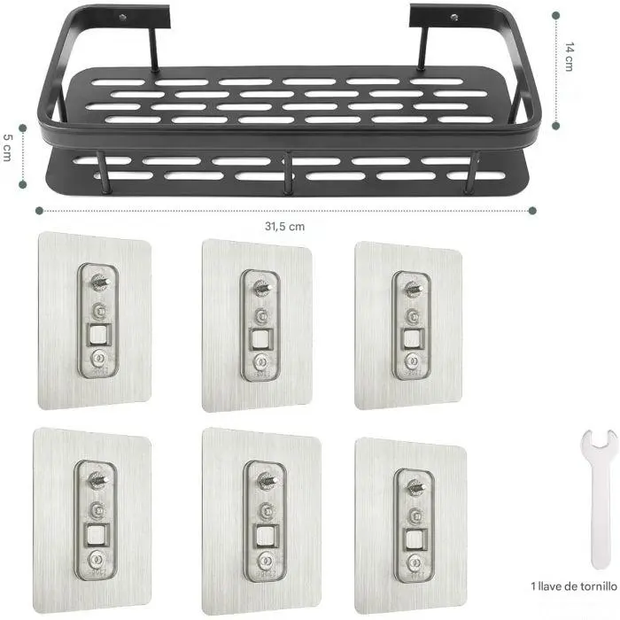 El estante de ducha está hecho de aluminio espacial, que es duradero, a prueba de óxido, impermeable, no se decolora, resistente a los arañazos.